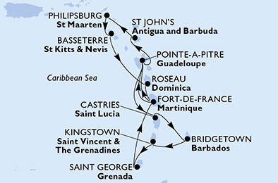 | 5. | 23.11.2027, Ut | 5. Philipsburg (Svätý Martin) / Holandsko | 08:00 | 19:00 |