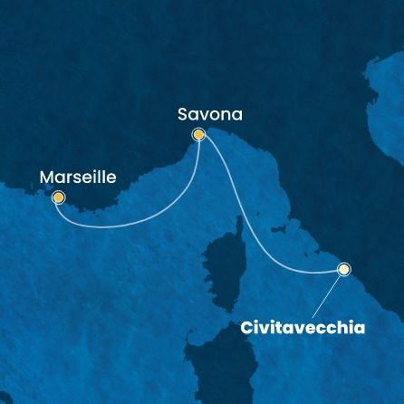 program deň za dňom1. deňCivitavecchia / Taliansko (nalodenie) / Civitavecchia je prístavné mesto na pobreží Tyrhénskeho mora, ktorého história siaha až do staroveku. Slúži ako dôležitá brána do Ríma, jedného z najstarších európskych miest, plného architektonických pokladov zo všetkých historických období. Medzi ikonické pamiatky hlavného mesta patrí Koloseum, Fórum Romanum, Vatikán – sídlo Svätého stolca, Fontána di Trevi či Španielske schody. V blízkosti Civitavecchie sa nachádza Tarquínia, známa ako jedno z najlepšie zachovaných pohrebísk Etruskov, tajomného starovekého národa, ktorého kultúra významne ovplyvnila dejiny Talianska. Civitavecchia tak spája historické dedičstvo prístavu s bohatstvom okolitých archeologických a kultúrnych skvostov.