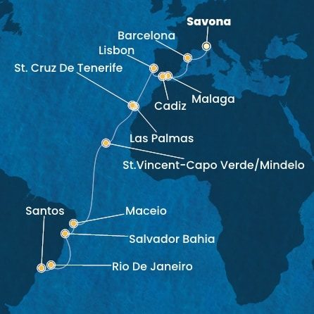 Taliansko, Španielsko, Portugalsko, Kapverdy, Brazília ze Savony na lodi Costa Diadema