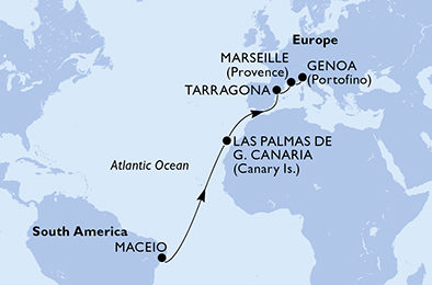 - Fakultatívne výlety v navštívených prístavoch. Lodná spoločnosť má v každom prístave širokú škálu výletov, na vyžiadanie zašleme zoznam. Exkurzie sú k dispozícii v nasledujúcich jazykoch: angličtina, španielčina, taliančina, francúzština, nemčina. Na plavbách s naším delegátom sú výlety v slovenčine/češtine.