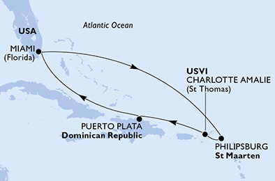 USA, Svatý Martin, Dominikánska republika z Miami na lodi MSC Seashore