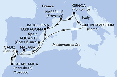 - Fakultatívne výlety v navštívených prístavoch. Lodná spoločnosť má v každom prístave širokú škálu výletov, na vyžiadanie zašleme zoznam. Exkurzie sú k dispozícii v nasledujúcich jazykoch: angličtina, španielčina, taliančina, francúzština, nemčina. Na plavbách s naším delegátom sú výlety v slovenčine/češtine.