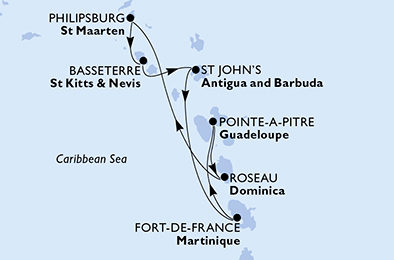 | 7. | 08.01.2028, So | 7. Fort de France (Martinik) / Francúzsko | 07:00 | 23:00 |