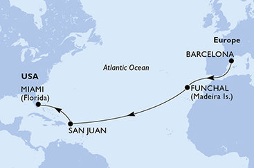 | Trasa: | Taliansko, Francúzsko, Španielsko, Maroko, Antigua a Barbuda, Svatý Martin, Svätý Krištof a Nevis, Dominikánska republika |