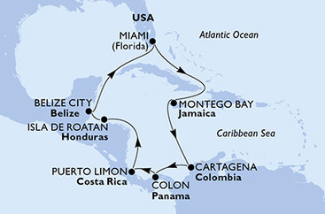 USA, Jamajka, Kolumbia, Panama, Kostarika, Honduras, Belize z Miami na lodi MSC Poesia