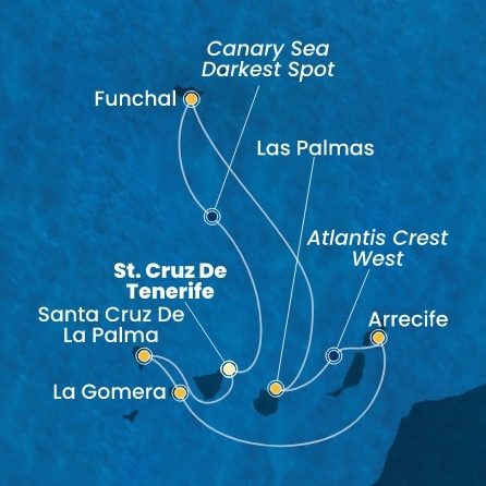 | 1. | 1. Tenerife (Tenerife) / Španielsko (nalodenie) | --:-- | 21:30 |