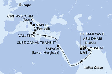 | 1. | 1. Dubaj / Spojené arabské emiráty (nalodenie) | --:-- | --:-- |