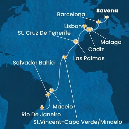 | 13. | 14.11.2026, So | 13. Mindelo (Sao Vincente) / Kapverdy | 08:00 | 18:00 |