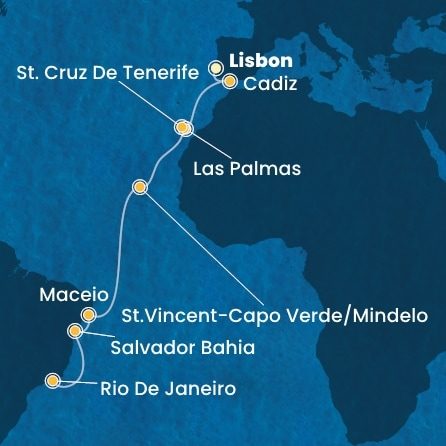 8. | 14.11.2026, So | 8. Mindelo (Sao Vincente) / Kapverdy | 08:00 | 18:00 |