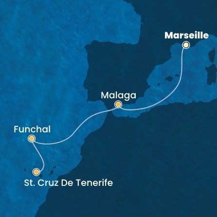 - Fakultatívne výlety v navštívených prístavoch. Lodná spoločnosť má širokú ponuku výletov v každom prístave, na vyžiadanie pošleme prehľad. Výlety sú v týchto jazykoch: anglický, španielsky, taliansky, francúzsky, nemecký. Na plavbách so slovenským delegátom sa konajú výlety v slovenčine.