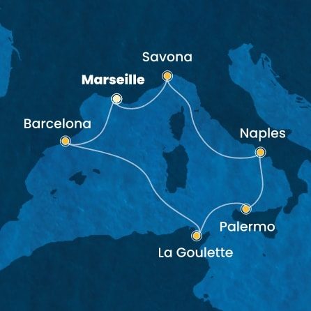 | 8. | 09.01.2027, So | 8. Marseille / Francúzsko (vylodenie) | 08:00 | --:-- |