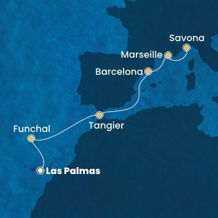 | 1. | 07.05.2027, Pi | 1. Las Palmas (Gran Canaria) / Španielsko (nalodenie) | --:-- | 20:00 |