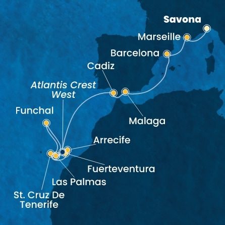 | 15. | 26.11.2026, Št | 15. Las Palmas (Gran Canaria) / Španielsko (vylodenie) | 05:00 | --:-- |