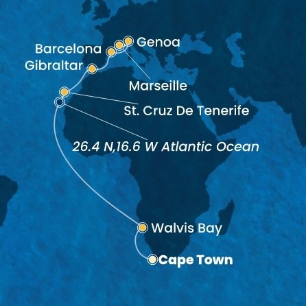 | 1. | 28.03.2027, Ne | 1. Kapské Město / Juhoafrická republika (nalodenie) | --:-- | --:-- |