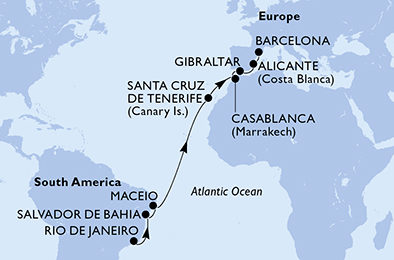 - Fakultatívne výlety v navštívených prístavoch. Lodná spoločnosť má v každom prístave širokú škálu výletov, na vyžiadanie zašleme zoznam. Exkurzie sú k dispozícii v nasledujúcich jazykoch: angličtina, španielčina, taliančina, francúzština, nemčina. Na plavbách s naším delegátom sú výlety v slovenčine/češtine.