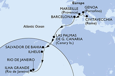 - Fakultatívne výlety v navštívených prístavoch. Lodná spoločnosť má v každom prístave širokú škálu výletov, na vyžiadanie zašleme zoznam. Exkurzie sú k dispozícii v nasledujúcich jazykoch: angličtina, španielčina, taliančina, francúzština, nemčina. Na plavbách s naším delegátom sú výlety v slovenčine/češtine.