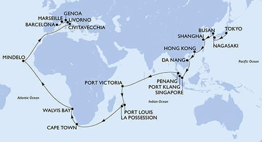 - Body vo vernostnom programe MSC Voyagers Club (od 200 bodov za plavbu).