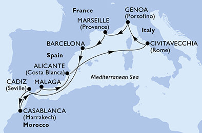 - Fakultatívne výlety v navštívených prístavoch. Lodná spoločnosť má v každom prístave širokú škálu výletov, na vyžiadanie zašleme zoznam. Exkurzie sú k dispozícii v nasledujúcich jazykoch: angličtina, španielčina, taliančina, francúzština, nemčina. Na plavbách s naším delegátom sú výlety v slovenčine/češtine.