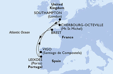 - Fakultatívne výlety v navštívených prístavoch. Lodná spoločnosť má v každom prístave širokú škálu výletov, na vyžiadanie zašleme zoznam. Exkurzie sú k dispozícii v nasledujúcich jazykoch: angličtina, španielčina, taliančina, francúzština, nemčina. Na plavbách s naším delegátom sú výlety v slovenčine/češtine.