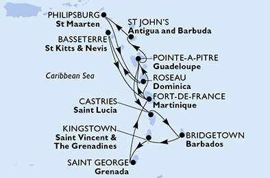 | 8. | 14.03.2028, Ut | 8. Philipsburg (Svätý Martin) / Holandsko | 08:00 | 19:00 |