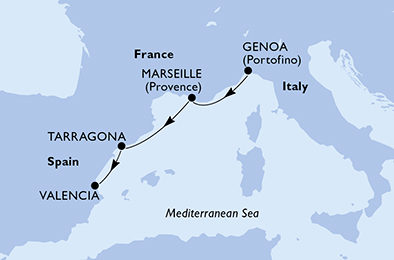Taliansko, Francúzsko, Tarragona, Španielsko z Janova na lodi MSC Orchestra