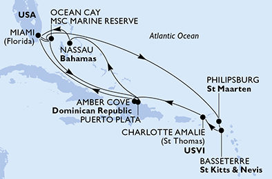 | 11. | 15.11.2027, Po | 11. Ocean Cay MSC Marine Reserve (Ocean Cay) / Bahamy | 08:00 | 18:00 |