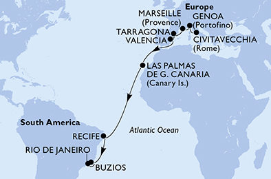 - Fakultatívne výlety v navštívených prístavoch. Lodná spoločnosť má v každom prístave širokú škálu výletov, na vyžiadanie zašleme zoznam. Exkurzie sú k dispozícii v nasledujúcich jazykoch: angličtina, španielčina, taliančina, francúzština, nemčina. Na plavbách s naším delegátom sú výlety v slovenčine/češtine.