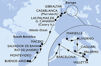- Súkromný výťah do kúpeľov MSC Aurea Spa a voľný vstup do termálnych zón počas celej plavby.