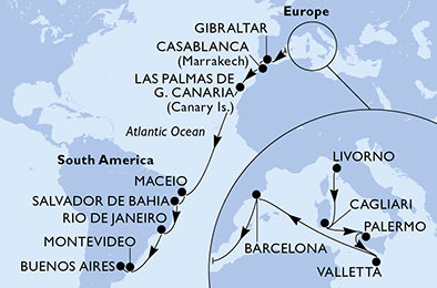 - Súkromný výťah do kúpeľov MSC Aurea Spa a voľný vstup do termálnych zón počas celej plavby.