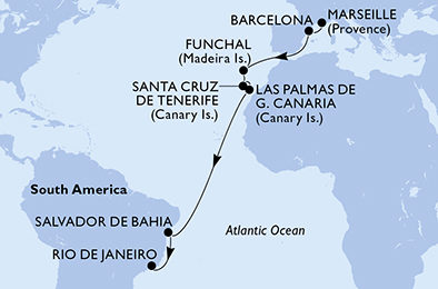 - Fakultatívne výlety v navštívených prístavoch. Lodná spoločnosť má v každom prístave širokú škálu výletov, na vyžiadanie zašleme zoznam. Exkurzie sú k dispozícii v nasledujúcich jazykoch: angličtina, španielčina, taliančina, francúzština, nemčina. Na plavbách s naším delegátom sú výlety v slovenčine/češtine.