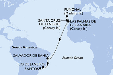 - Fakultatívne výlety v navštívených prístavoch. Lodná spoločnosť má v každom prístave širokú škálu výletov, na vyžiadanie zašleme zoznam. Exkurzie sú k dispozícii v nasledujúcich jazykoch: angličtina, španielčina, taliančina, francúzština, nemčina. Na plavbách s naším delegátom sú výlety v slovenčine/češtine.