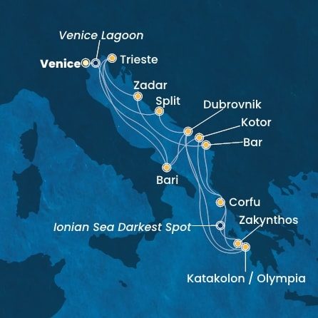 Kajuty s balkónom sa nachádzajú na palubách: 4, 5, 6, 7 a 8.