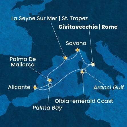 | 7. | 18.09.2026, Pi | 7. Golfo Aranci (Sardínia) / Taliansko | 19:15 | 21:00 |